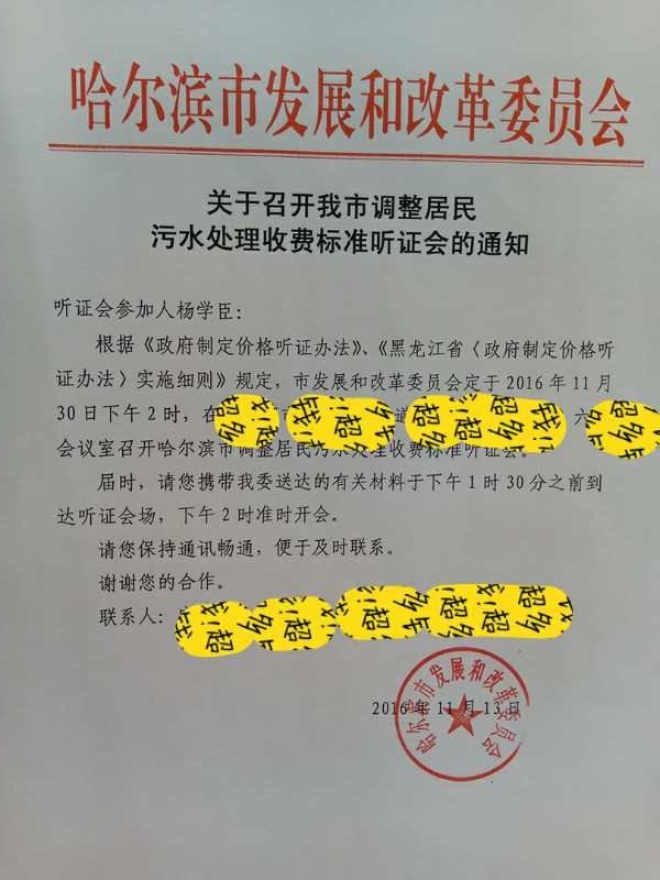 【法律顾问网.涉外讯】哈尔滨市发改委邀请本站法律专家、黑龙江省环资能主任、金马律师事务所杨学臣律师参加调整居民污水处理标准听证会,杨律师在听证会上提出的建议受到发改委与会领导好评和赞誉。